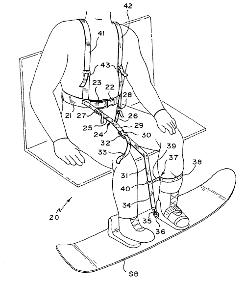 Somehow the snowboard suspenders concept actually made it to market as the Legsaver