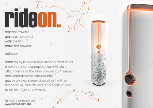 The Konkur snowboard pole comes complete with various other ineffective accoutrements. |