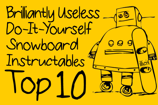 The other day we came across Instructables.com, a site for sharing do-it-yourself tips and projects, and we thought it would be interesting to see if there was anything useful we could find to improve snowboarding. We found nothing. What we did find was a million ways to create a snowboard display rack, some crappy tips on learning to snowboard and an incredible horde of bewilderingly useless inventions that should never have seen the light of day. Here's our top 10...