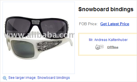The Alibaba.com site puts manufactures in touch with importers and when we ran a search for 'snowboard' things didn't get off to a good start. This was the 5th result: