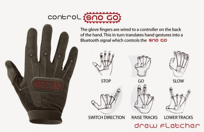 An idea for a motorised track that bolts on to a standard snowboard. It comes complete with a already defeatist product name, and an incredibly complicated power glove