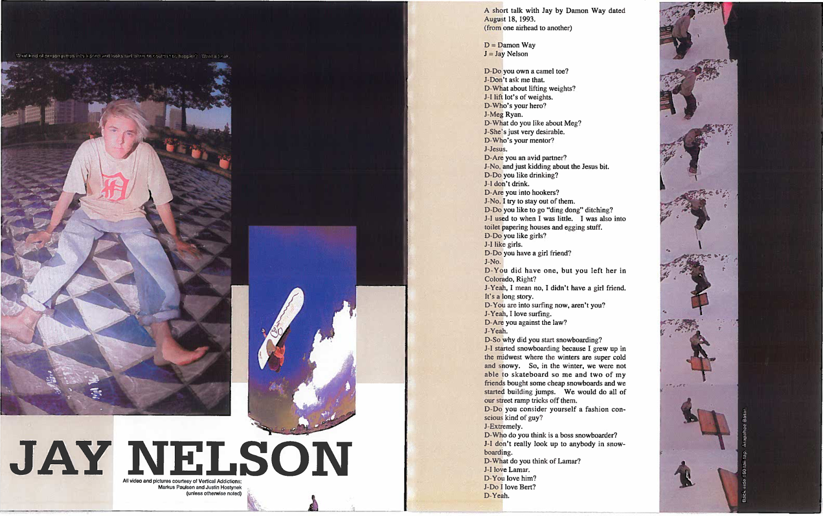In the early 90's Ken Block (him of the spinny cars) and Damon Way, decided to use the shotgun approach to entrepreneurism and start-up every company. Within a few years they'd created Eightball clothing, Type A Snowboards, Droors clothing (which later became DC Shoes) and Blunt Magazine. Blunt ran from 1993 until 1998, when it was closed by the then owners Larry Flynn Publications (him of the porn), because it was a little too edgy for them. We've managed to get hold of the first edition to take a look at why this mag is so fondly remembered in the misty water-coloured memories of a generation of snowboarders...